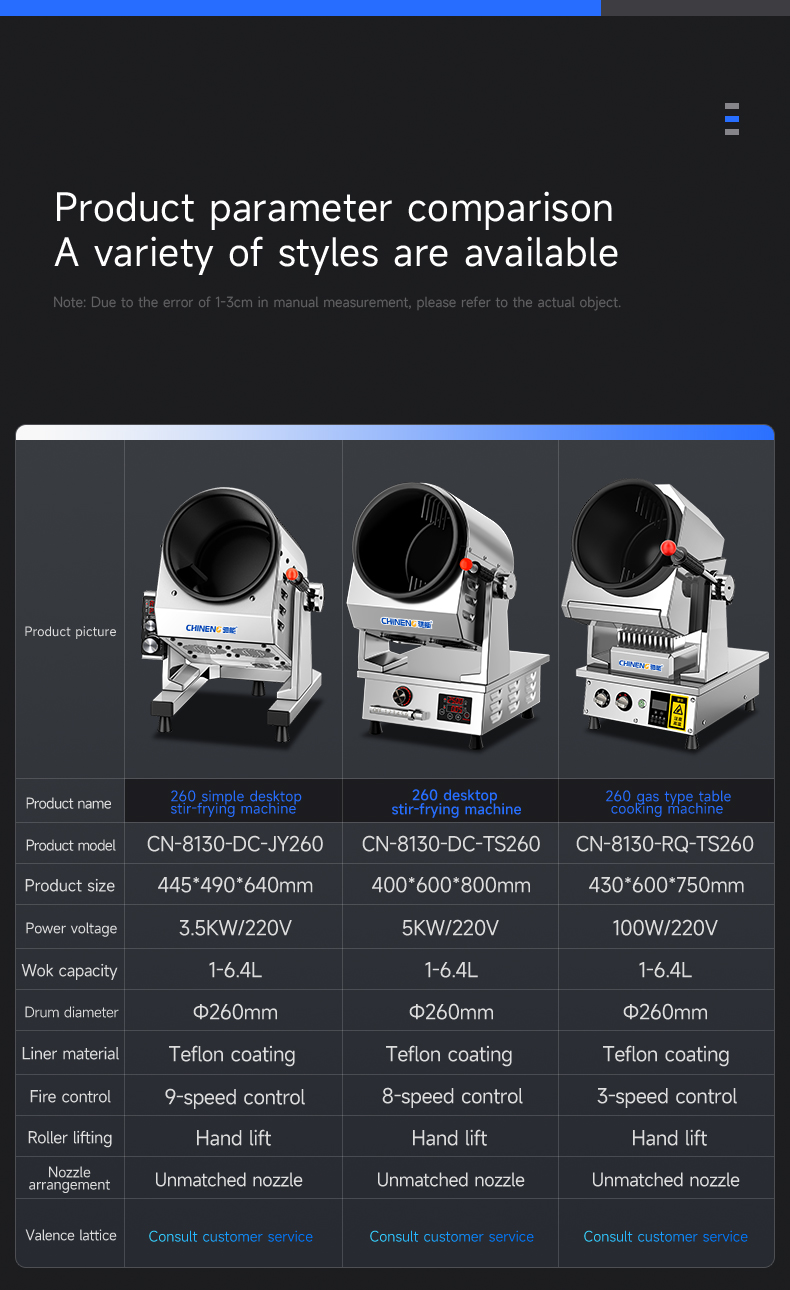 CHINENG will upgrade the product specifications from time to time according to the market feedback. The parameters on the page may not be updated in time, so the specific parameters are based on the real products. At the same time, there are many kinds of commercial kitchen equipment, and some products do not appear on the page. If you have equipment needs or customized services, please add the customer service WeChat below for detailed consultation. Thank you for coming!