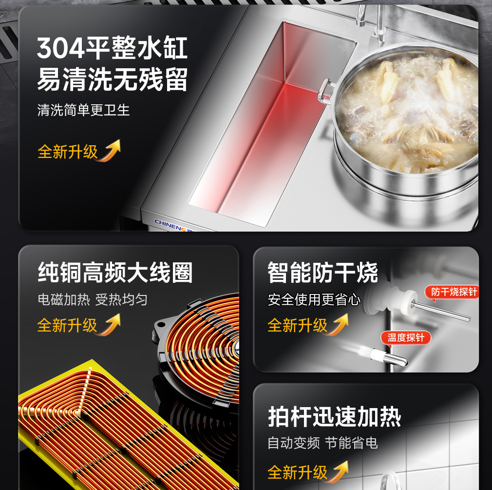 功率/电压:8KW/380V(煮面炉)        5KW/380V(煲汤炉)
