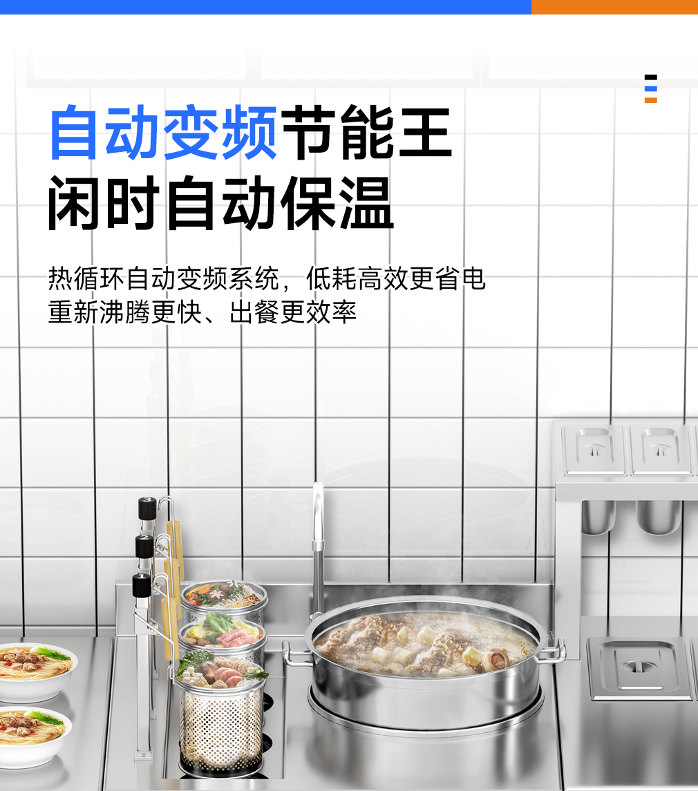 功率/电压:15KW/380V(煮面炉)        3.5KW*2/380V(煲汤炉)